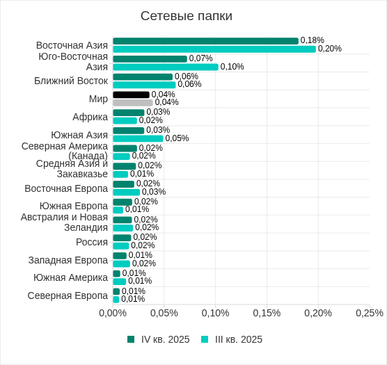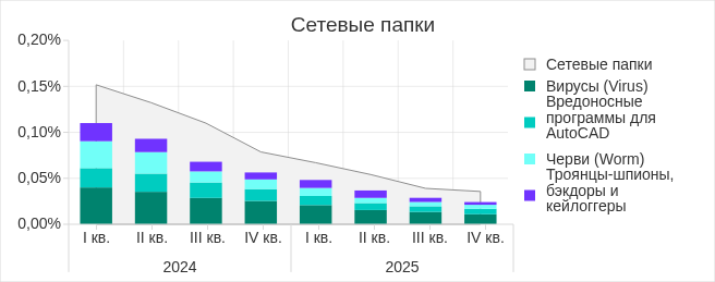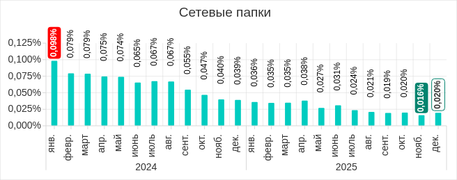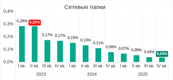 В четвертом квартале 2025 года показатель по сетевым папкам достиг минимального значения с начала 2023 года.