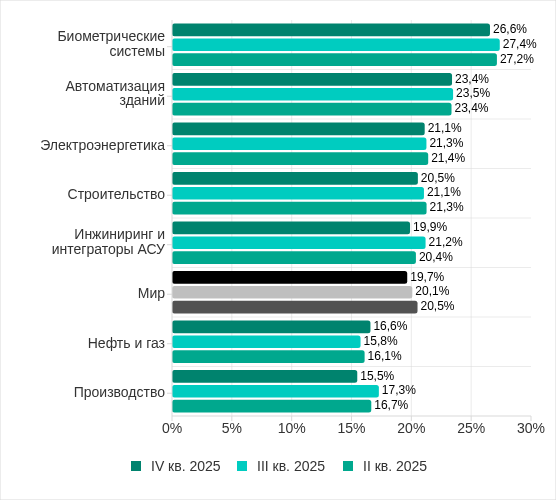 В четвертом квартале 2025 года в мире доля компьютеров АСУ, на которых были заблокированы вредоносные объекты, продолжила уменьшаться и оказалась минимальной с 2022 года — 19,7%.