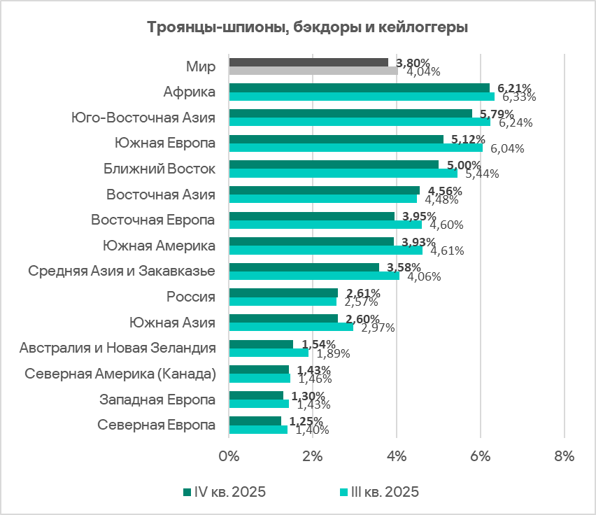 Показатель шпионских программ в регионе значительно превышает среднемировое значение: в четвертом квартале 2025 года — в 1,6 раза.