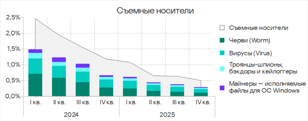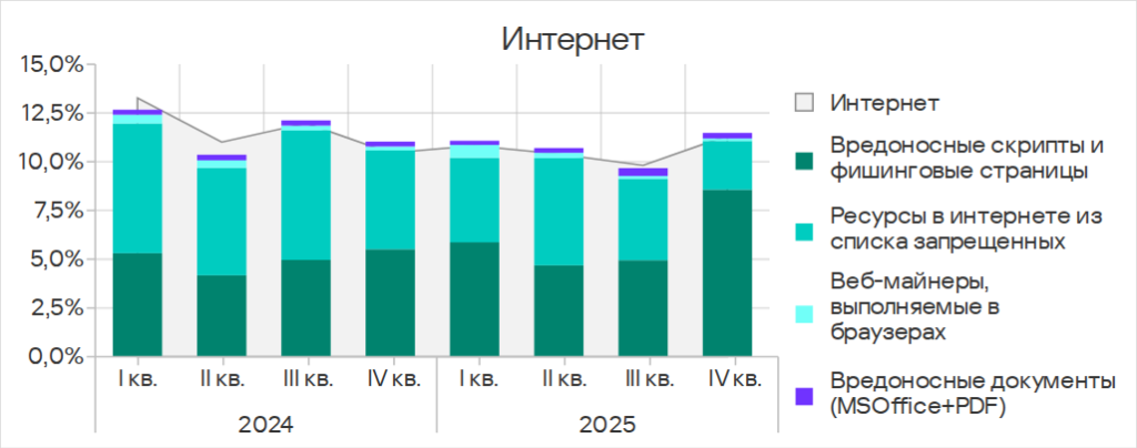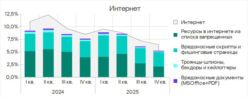 В четвертом квартале 2025 года показатель уменьшился у всех источников угроз.