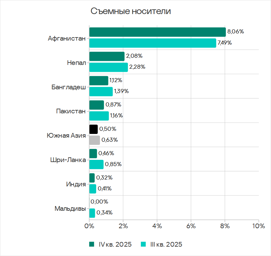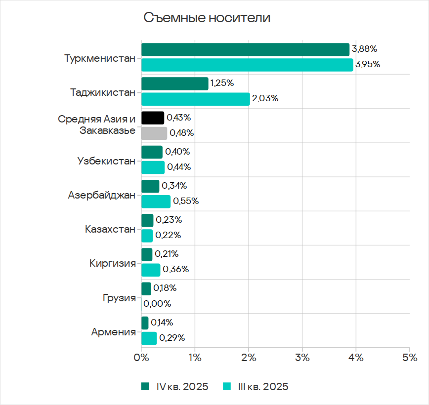 - третье место по угрозам на съемных носителях;