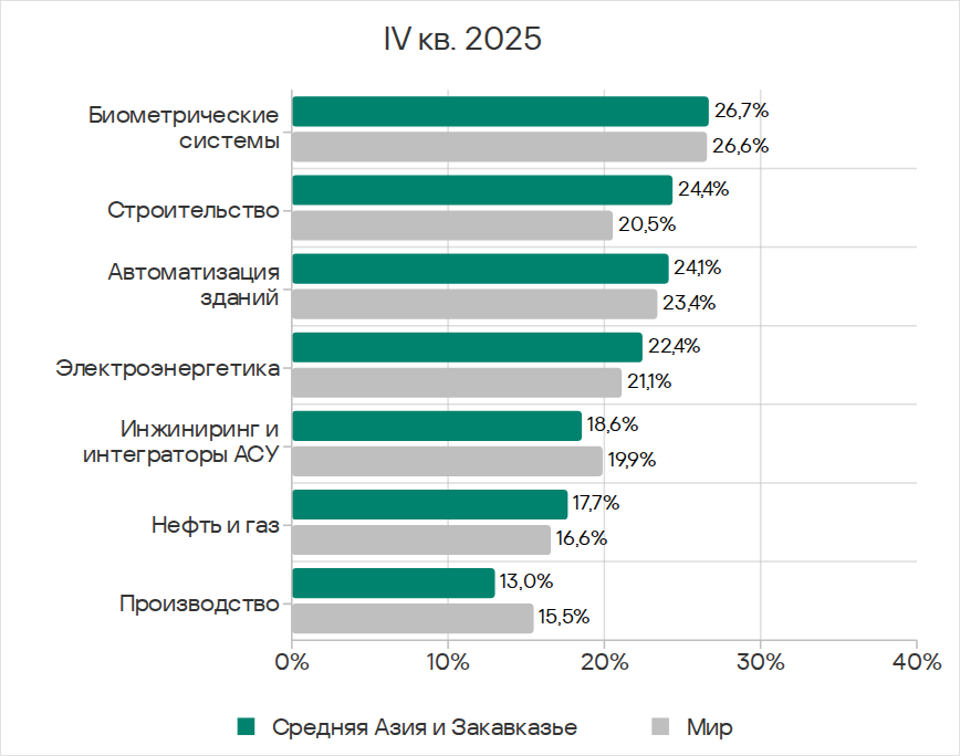 Показатели источников угроз в отраслях в Средней Азии и Закавказье, IV квартал 2025 года