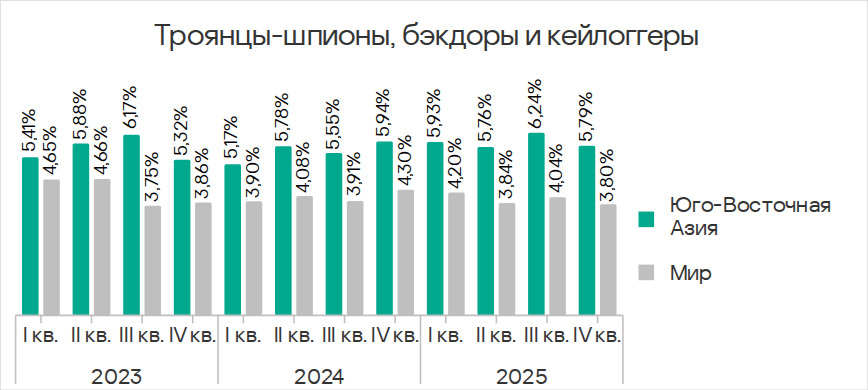 Почта — основной канал распространения шпионских программ в регионе. В рейтинге регионов по показателю шпионских программ Юго-Восточная Азия находится на втором месте.