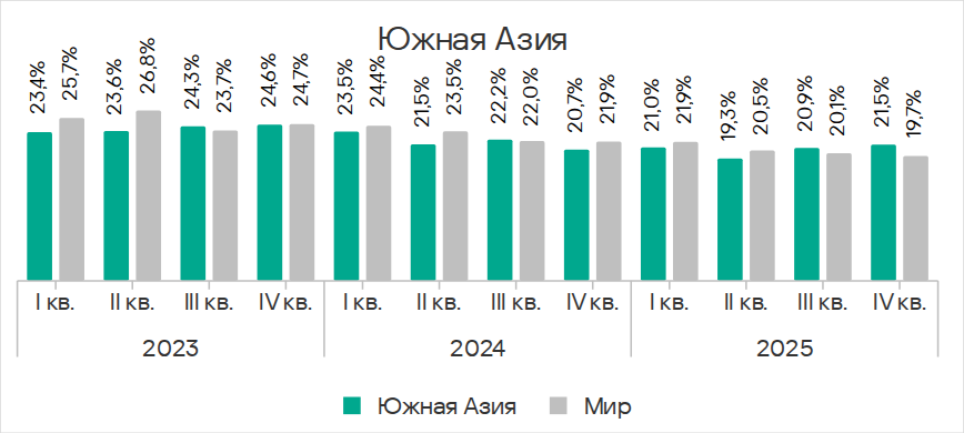 Показатель в Юго-Восточной Азии уменьшается второй квартал подряд.
