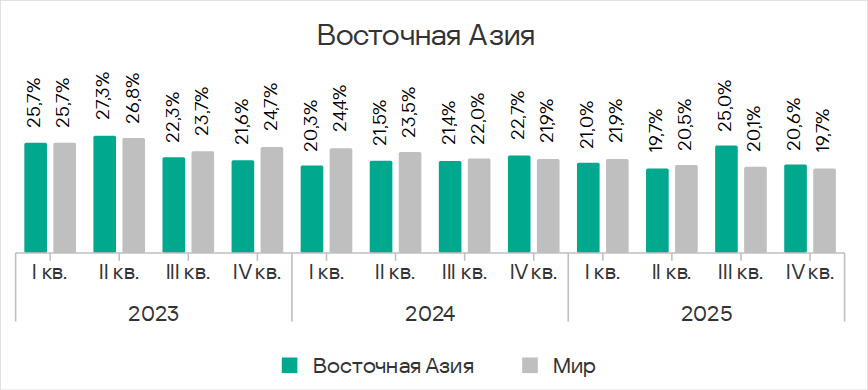 Юго-Восточная Азия в четвертом квартале 2025 года заняла первое место среди регионов по показателям категорий: