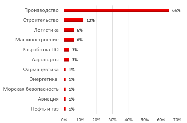 Распределение атакованных промышленных компаний по индустриям