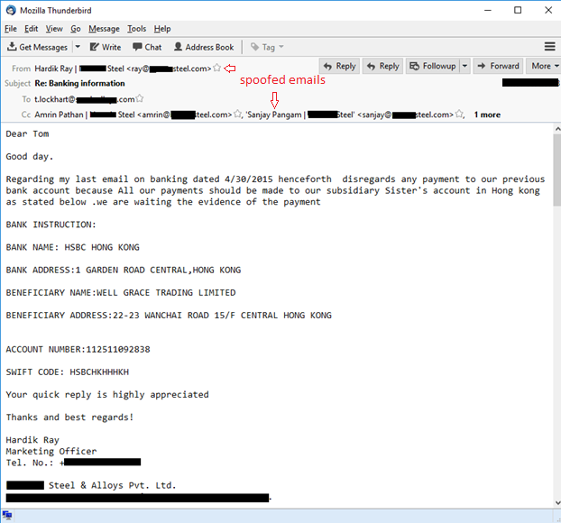 Еще один вариант: получив с помощью троянца-шпиона и/или бэкдора доступ к легитимному ящику одного из сотрудников атакованной компании, злоумышленники ведут мошенническую переписку с этого ящика.