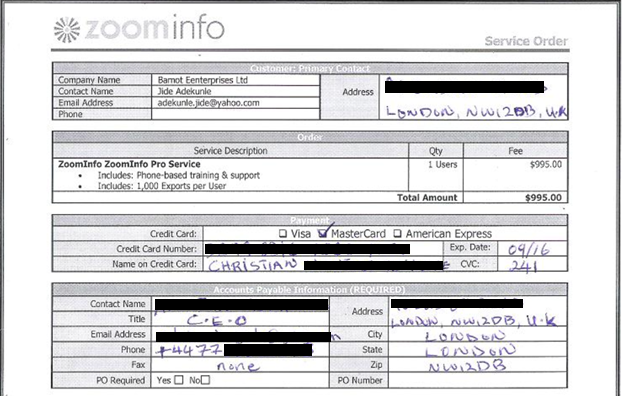 Покупка данных компаний нигерийским фишером за 995 долларов
