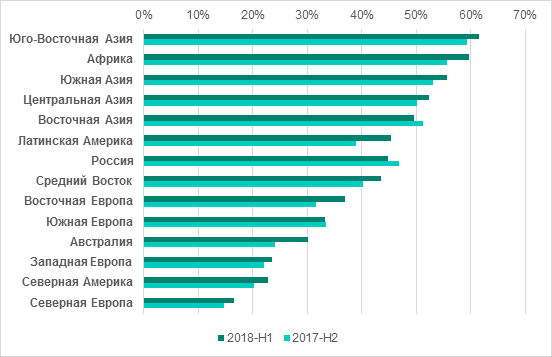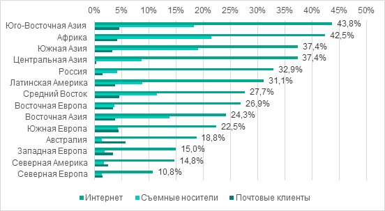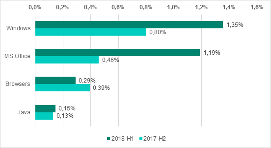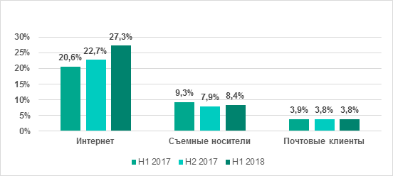 Несмотря на глобальное уменьшение количества пользователей, атакованных программами-вымогателями, процент компьютеров АСУ, на котором были заблокированы атаки вымогателей, вырос — с 1,2% до 1,6%. Хотя этот показатель и кажется не очень значительным, опасность такого рода вредоносных программ для промышленных предприятий трудно недооценивать после WannaCry и ExPetr.