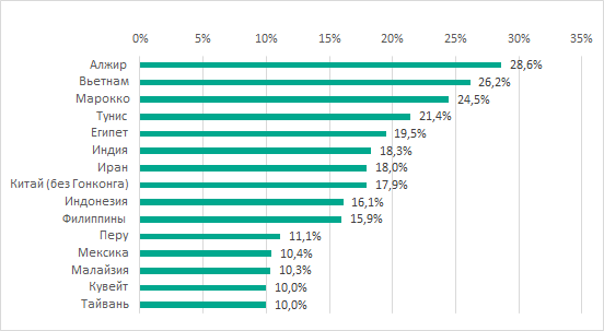 Также весьма разнообразной оказалась география первоначальных, промежуточных и последующих целей исследованной серии атак группировки. Наибольшее количество жертв и целей оказалось в России, на втором месте — Турция и Украина. Менее половины атакованных систем имело отношение к промышленности, сельскому и коммунальному хозяйству.
