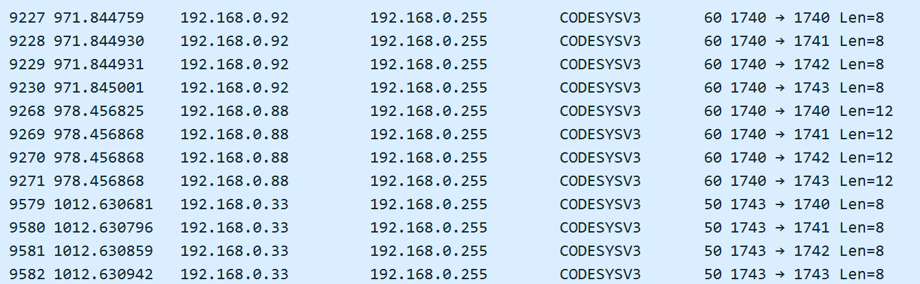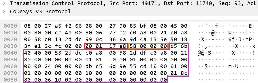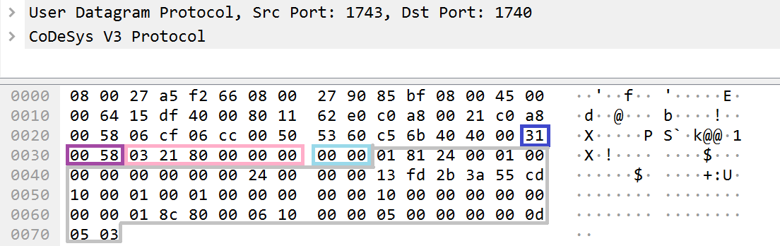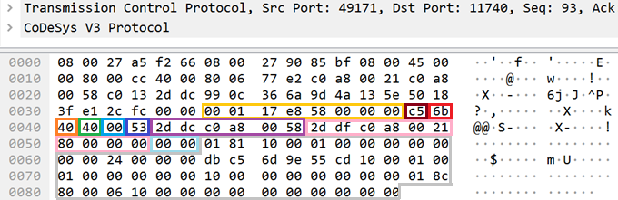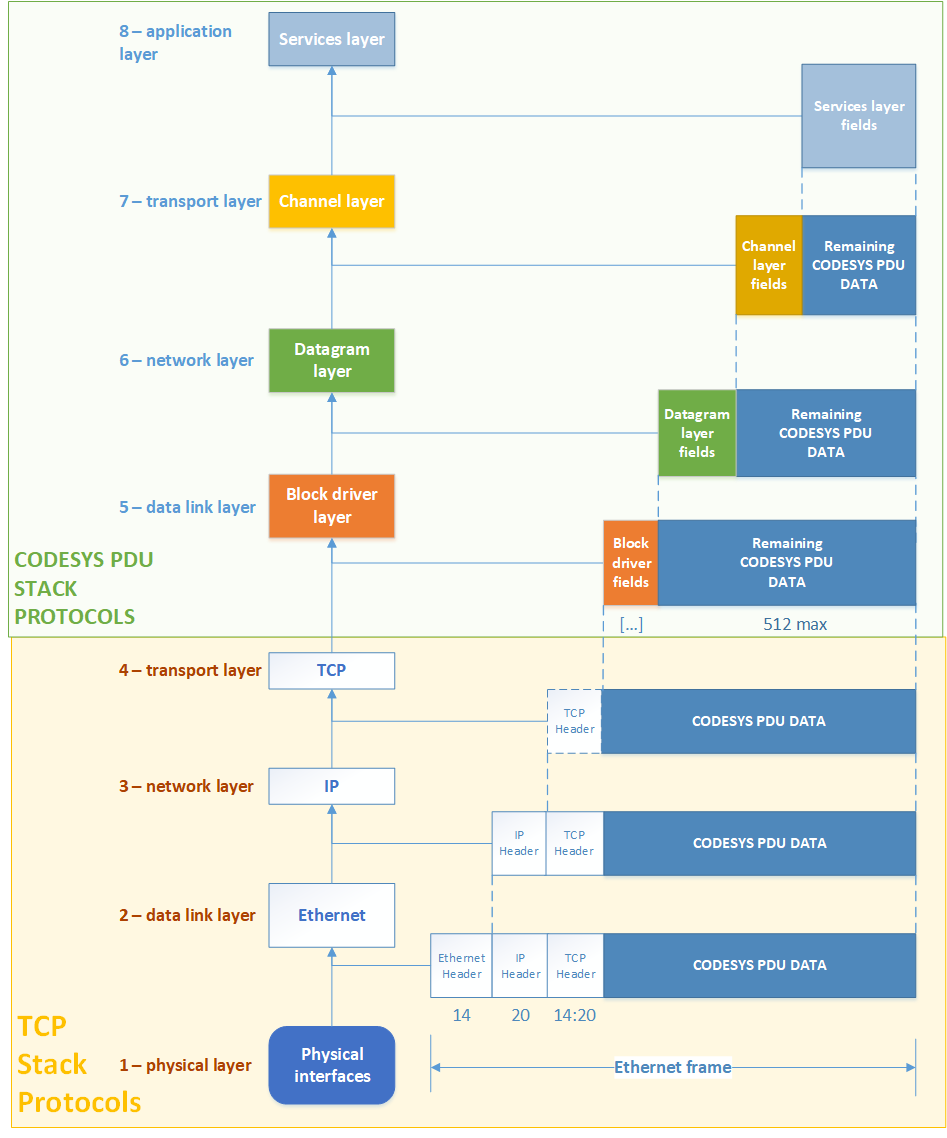 Так, например, конечный CODESYS PDU пакет, отправленный через сетевой интерфейс по TCP, будет содержать сразу два стека протокола — TCP и CODESYS PDU.