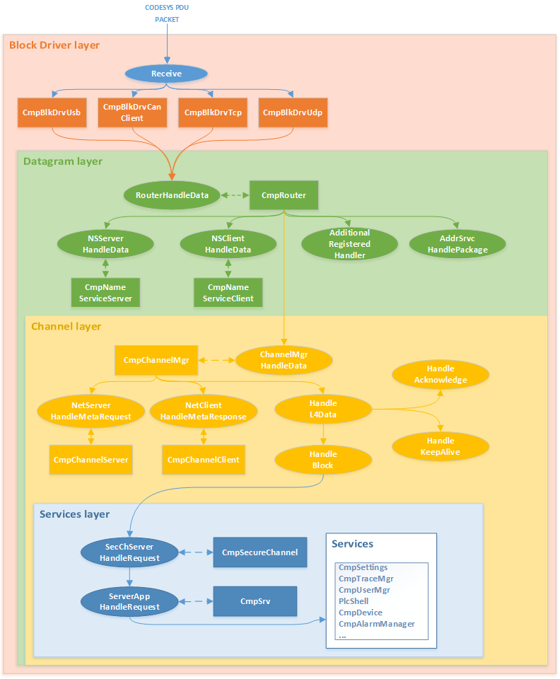 Вся полезная работа CODESYS Runtime — это совокупная работа его компонентов. Компоненты могут расширять возможности друг друга. В том числе, это работает для компонентов, которые разбирают полученный пакет, сформированный по протоколу PDU.