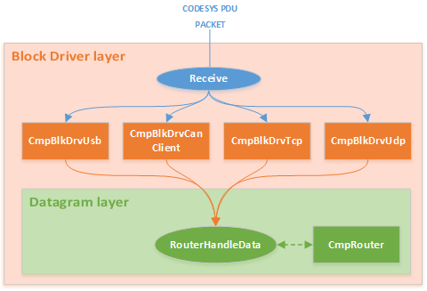 Схематичное представление разбора компонентами пакета CODESYS PDU на уровне Block Driver (Block Driver Layer)