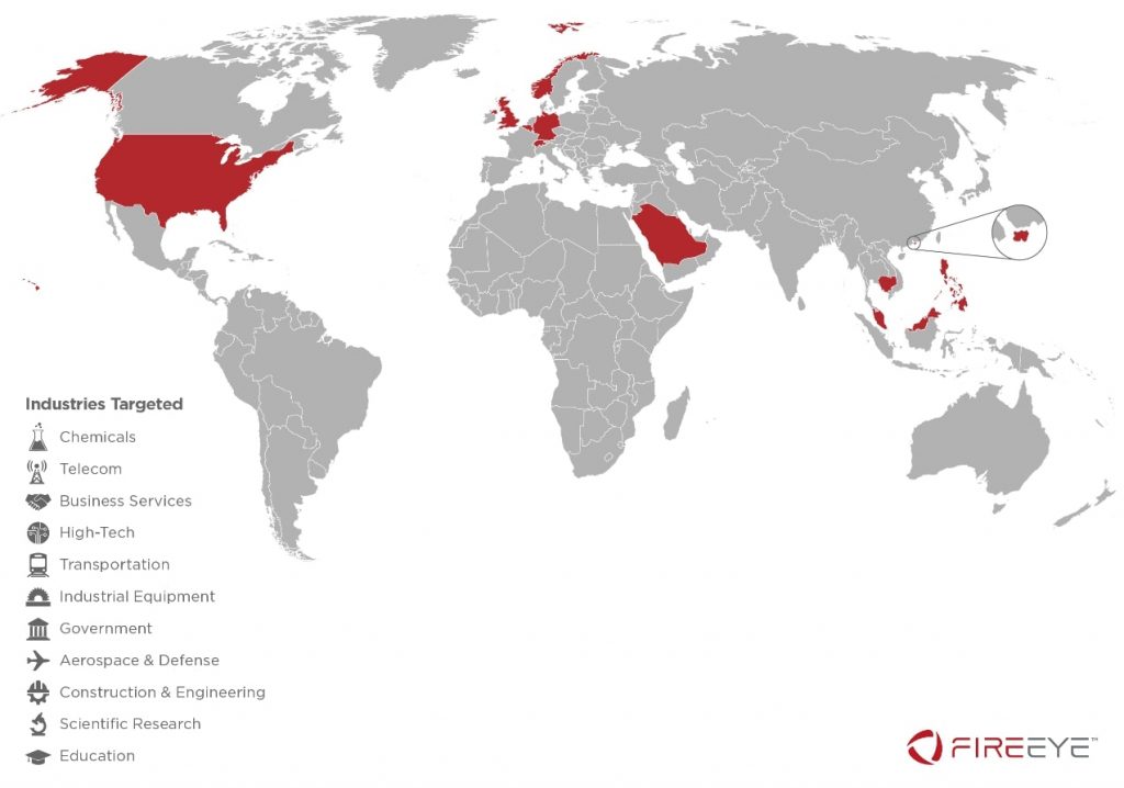 В августе 2019 компания FireEye описала активность китайской группы, работающей с 2012 года и занимающейся стратегическим шпионажем в областях, связанных с пятилетним планом экономического развития Китая. В числе атакованных организаций телекоммуникации, здравоохранение, производители полупроводников, продвинутого аппаратного обеспечения компьютеров, батарей, электромобилей и другие. Эти организации располагаются в 14 странах, включая Францию, Индию, Италию, Японию, Южную Корею, Великобританию, США.
