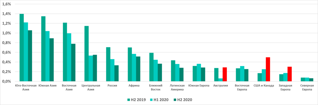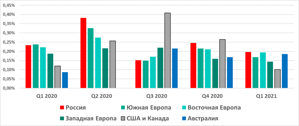 В первом квартале 2021 года в Европе и Северной Америке этот показатель пошел на спад: